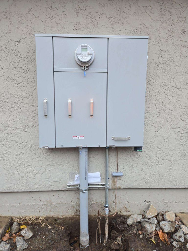 We’ve completed many underground service upgrades across Northern California. Here’s one of our recent projects — a 400A main panel upgrade with a 440-foot trench: